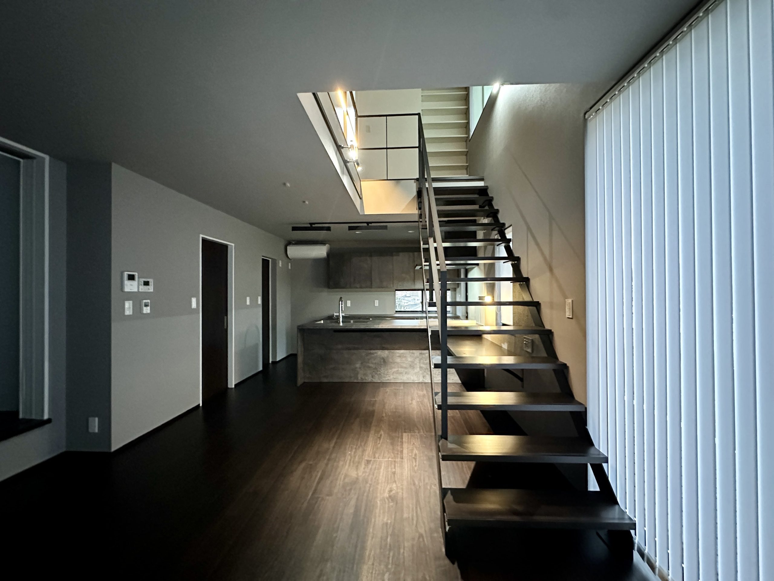 オープン階段は、鉄製なのでおしゃれでかっこいい雰囲気で、