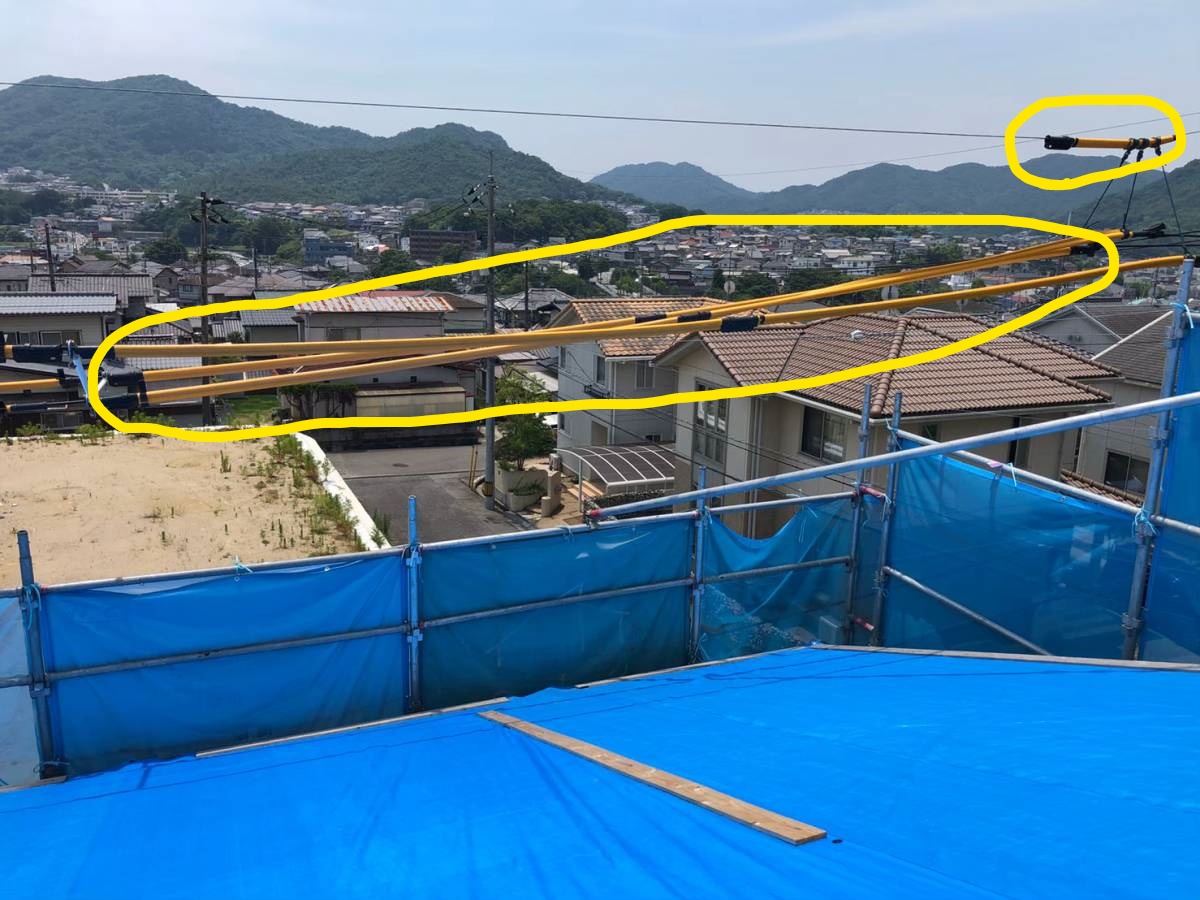 現在進行中のこちらの現場では、土地の真上に電線が通っていたため、