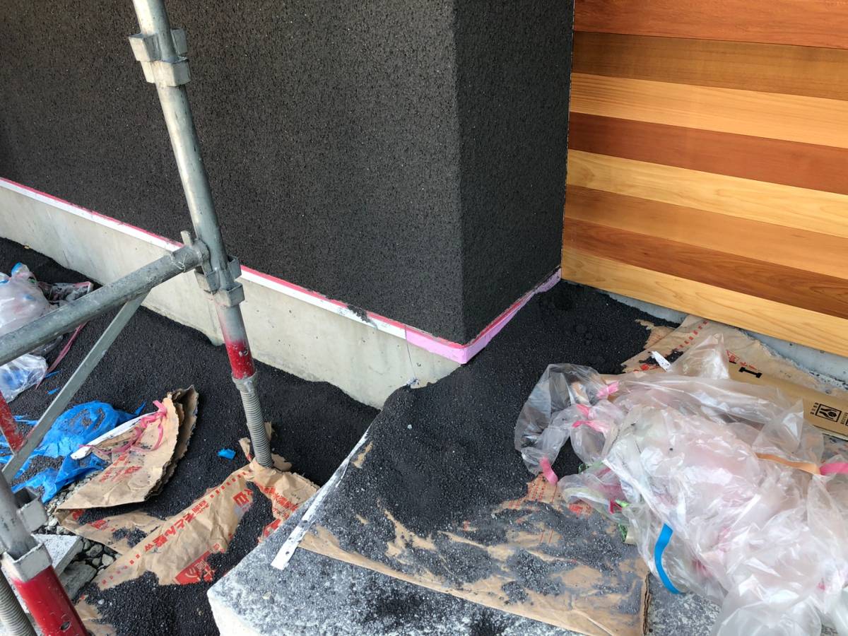 こちらの現場では、自然素材の外壁材『そとん壁』を