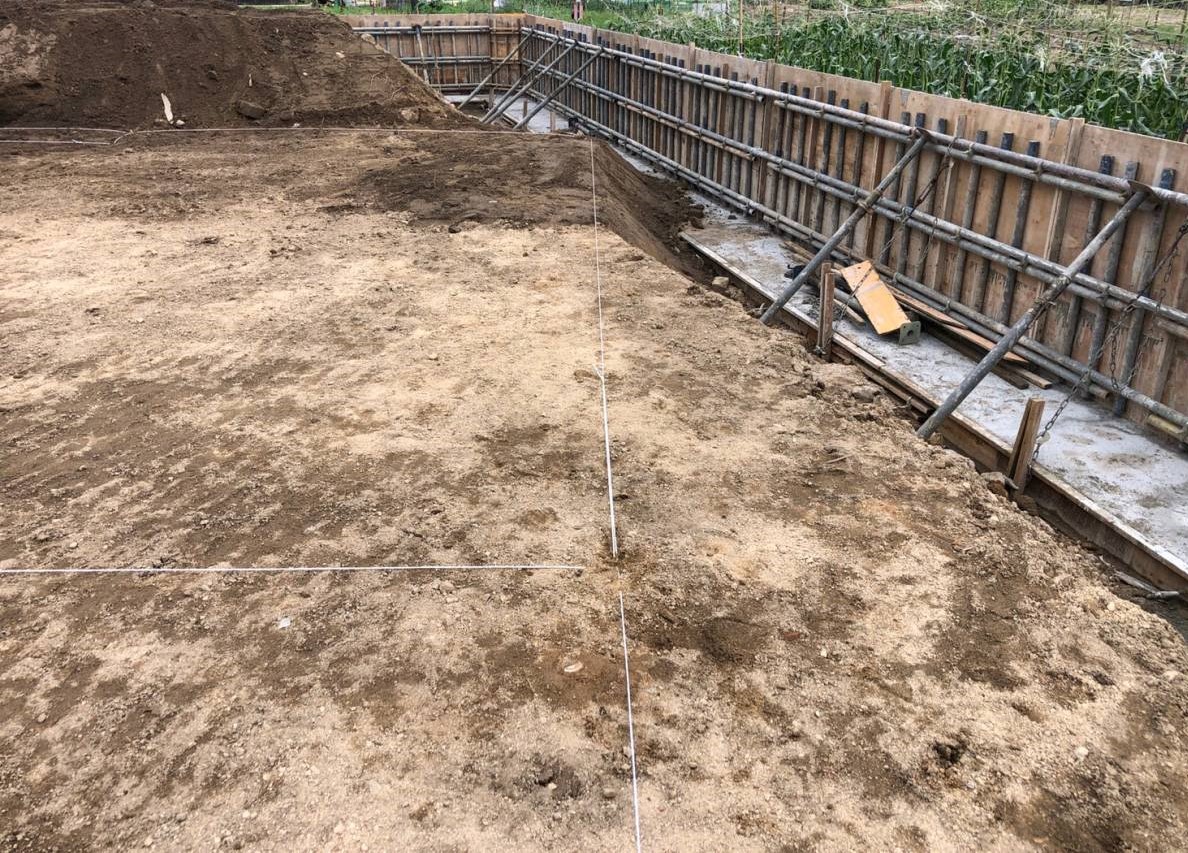 おとなりの敷地をお借りして、境界線上にまたがって作業を