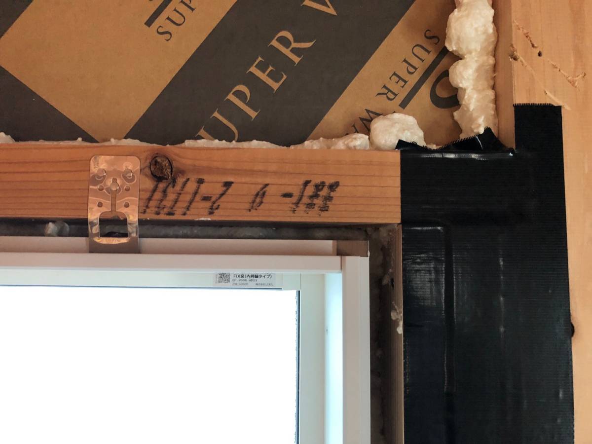 サッシと窓枠の隙間も+気密テープでしっかりと処理しています。