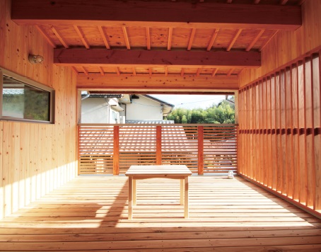 自然素材の「シラス」を使う「そとん壁」。劣化が少なく補修が不要、継ぎ目のない美しい印象の外観に西日と道路からの視線を遮る役割を果たしているガレージと屋根付きウッドテラスは、H様家族にとってなくてはならない場所。ガレージもウッドテラスも南北に抜けているので、風通しが良く、湿気や熱気がこもることがありません。清潔で明るく、洗濯物を干したり、子どもたちが昆虫を飼ったり、思い思いの使い方をしています。特にウッドテラスはご主人のお気に入り。昼間は子どもたちの遊び場になっていますが、夜はご主人がお酒を飲んだり、考えごとをしたり、1人の時間をここで楽しんでいるのだとか。このように外(道路)と内(家)の間の空間を、上手に日常生活に取り込むことで、ほかにはない自分たちだけの豊かな場所を手に入れることができるのです。