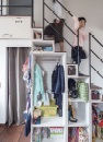 階段下には収納を造作。収納したいものに合わせてつくられた、大小さまざまな箱の組み合わせは大工のなせる業