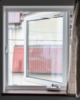 風向きに合わせて縦滑り出し窓を採用。開けた窓ガラスがウインドキャッチャーの役割を果たし、外の風を室内に誘導して風の流れをつくり出してくれる