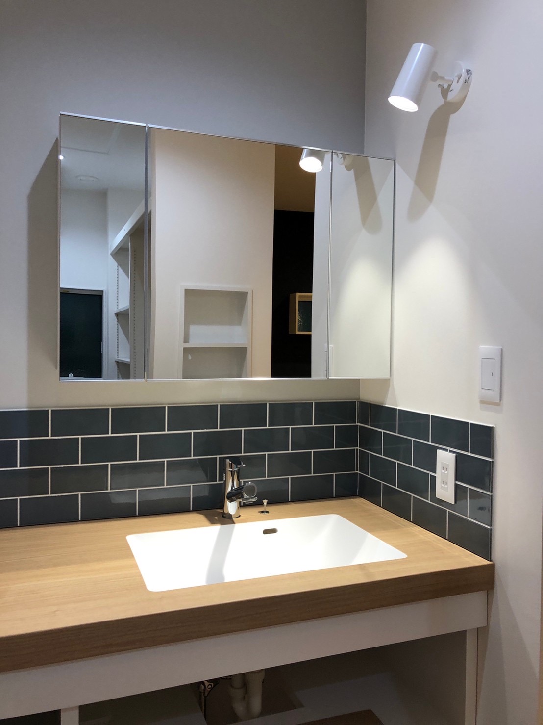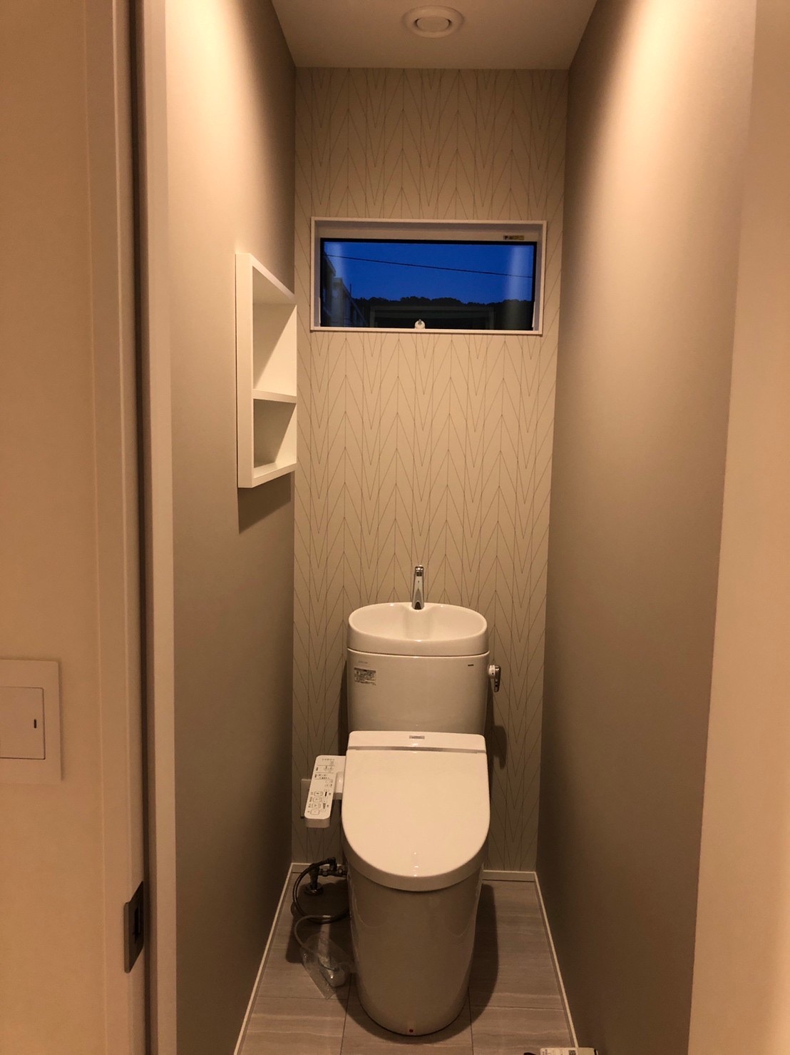 サンゲツの幾何学模様のアクセントクロスにしています。