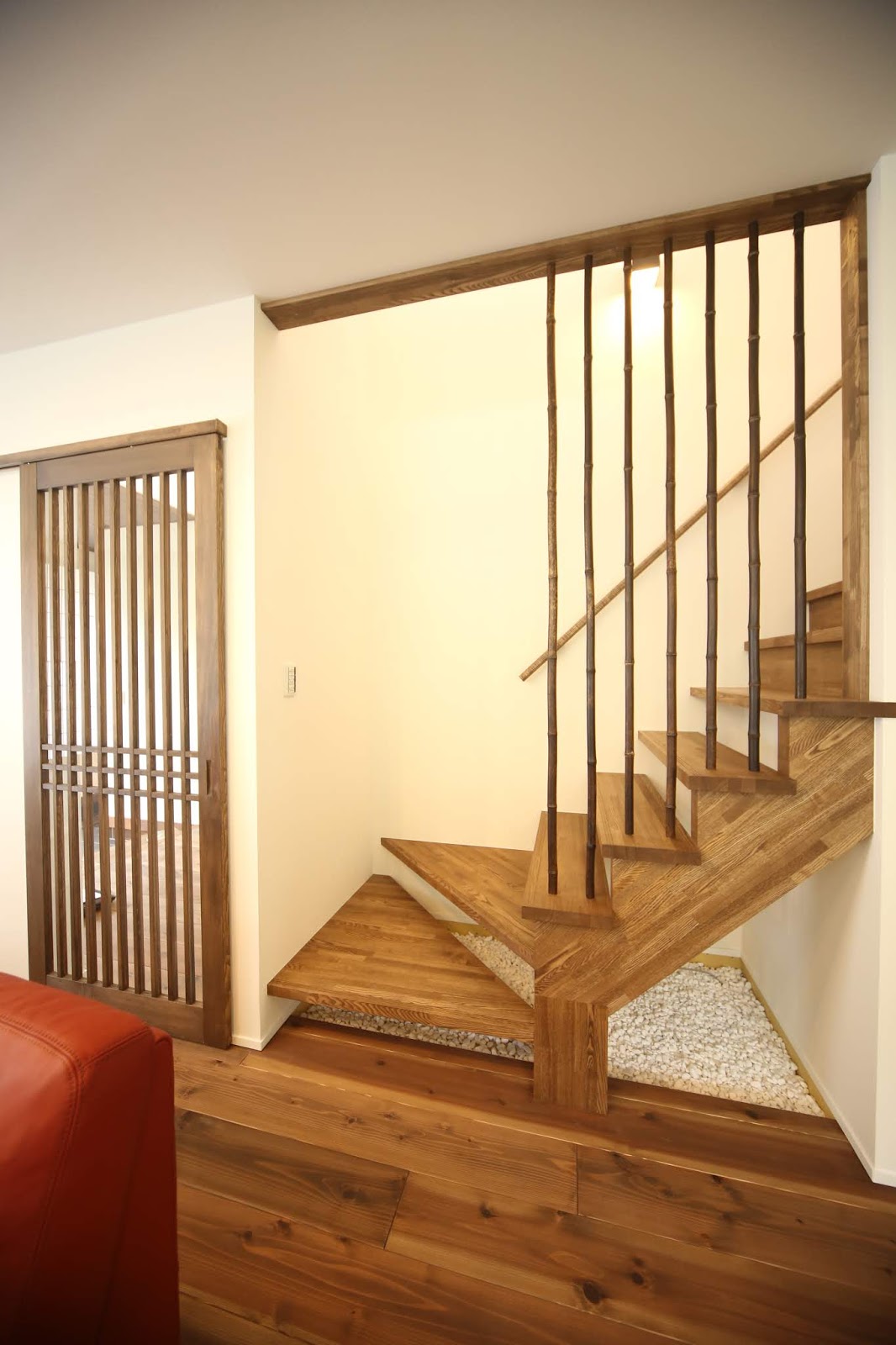 こちらの階段には、竹の柵! とても味があります。